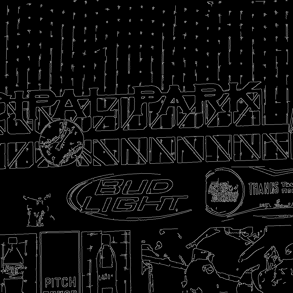 Photo of a baseball stadium scoreboard, close-up view. The image shows the words "CIPAL PARK" prominently displayed on a metal structure above various advertisements including Bud Light and Coca-Cola. Below the main sign are several smaller screens displaying baseball action and other promotional material. The overall composition is centered on the stadium signage against a blurred background of netting and sky.