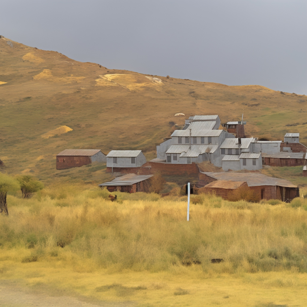 colors. The buildings are predominantly low-slung structures with metal roofs, some \dots